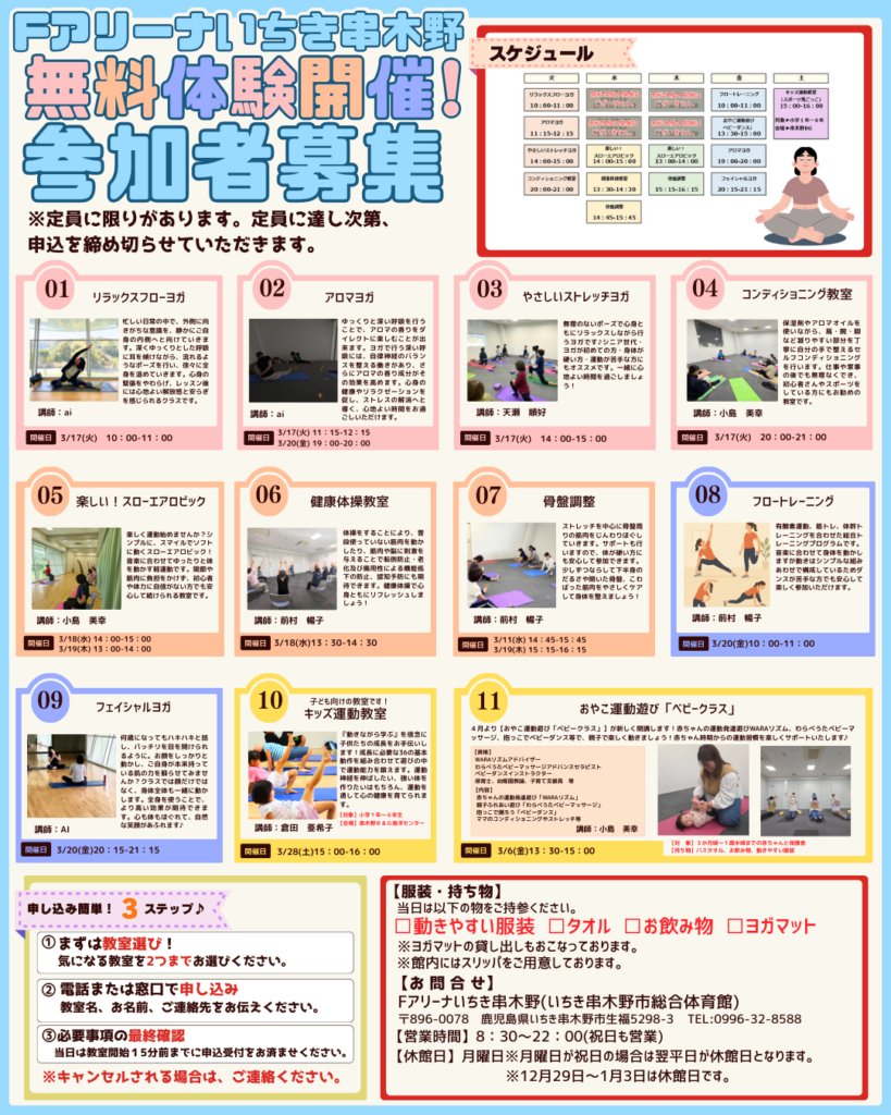 複数の教室で無料体験を開催いたします。