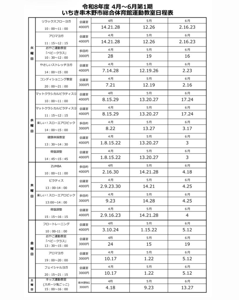 第1期健康運動教室(令和8年4月~6月)の募集を開始いたします!